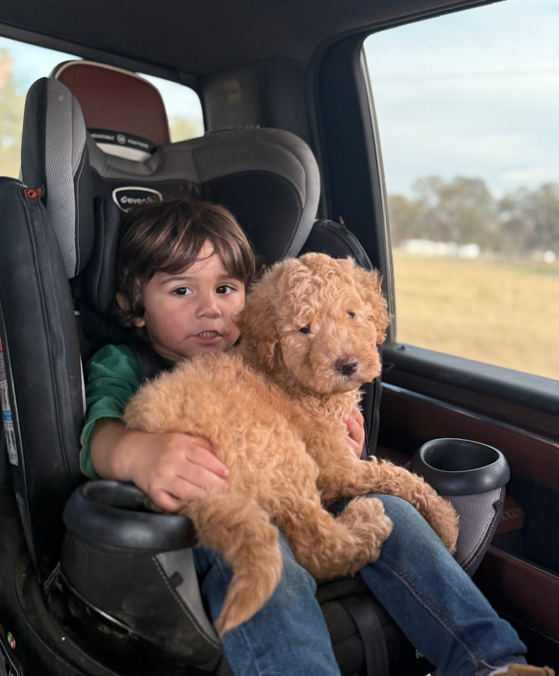 Five years ago, we were living on a working livestock farm in California, where caring for animals was part of our everyday life. Long days on the farm taught us patience, responsibility, and the importance of putting animal welfare first. It was in this environment — filled with open land, hands-on care, and deep respect for animals — that our love for Golden Retrievers and Golden Doodles truly blossomed.